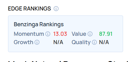 - Edge Stock Ratings: 13.03 Momentum score with Value at 87.91.
