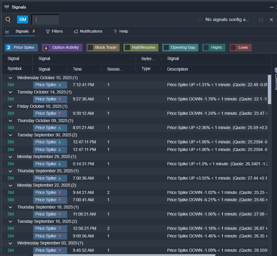 - Benzinga Pro’s signals feature notified of a potential breakout in SM shares.
